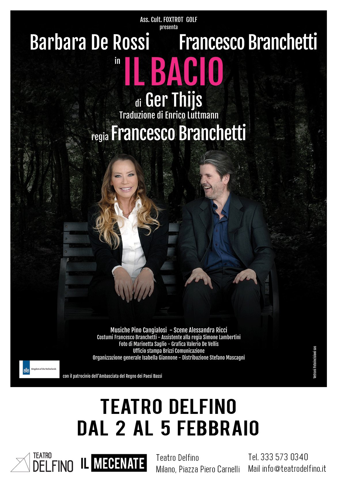 Dopo il grande successo di Medea, torna a teatro la collaudata coppia Barbara De Rossi-Francesco Branchetti nel testo dell’olandese Ger Thijs “Il Bacio”, presentato dall’Associazione culturale Foxtrot Golf, in scena al Teatro Delfino di Milano dal 2 al 5 febbraio 2017.